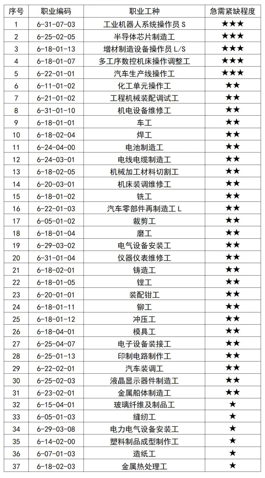 3.急需紧缺程度:★为一般急需紧缺,★★为比较急需紧缺,★★★为非常急需紧缺。